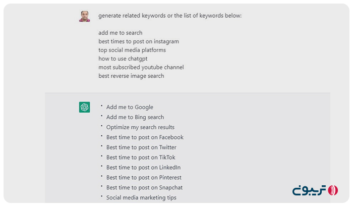 نمونه کاربردهای ChatGPT برای تحقیق کلمات کلیدی