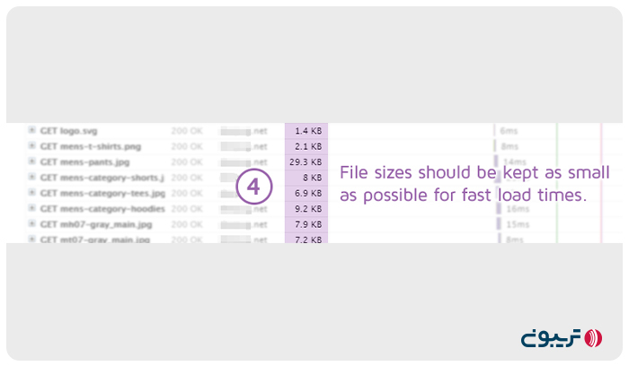• بهینگی تصاویر، فونت‌‌ها و کدهای Html ،CSS ،JS و… مورد استفاده در سایت