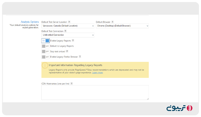 ۳. آموزش کار با GTMetrix؛ تنظیمات سفارشی قسمت Advanced Options