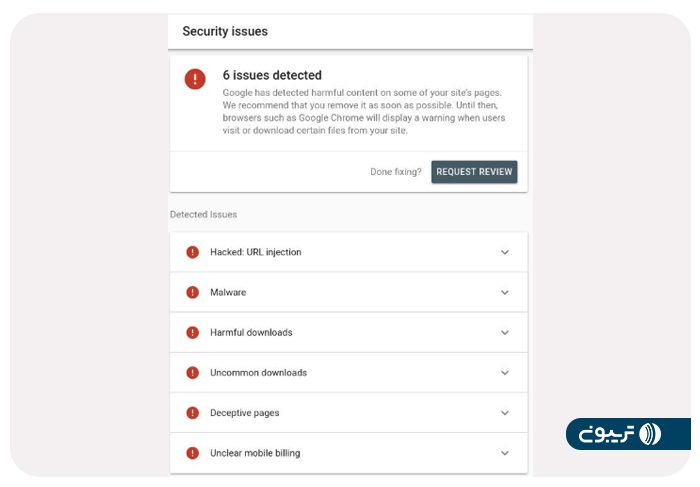 در Google Search Console به بخش «مشکلات امنیتی» بروید. آنچه که باید ببینید صفحهای مانند این است: