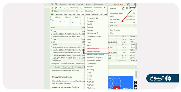 • مرحله دوم: فعال کردن تنظیمات Network Conditions