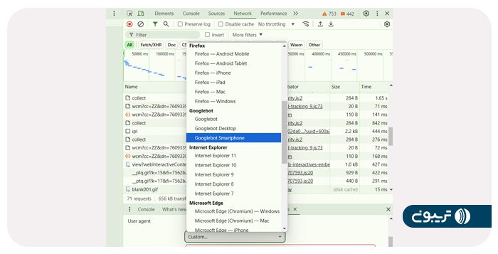 نکته: اگر این گزینه در لیست وجود ندارد، می‌توانید رشته User-Agent مربوط به گوگل بات را به‌صورت دستی وارد کنید: