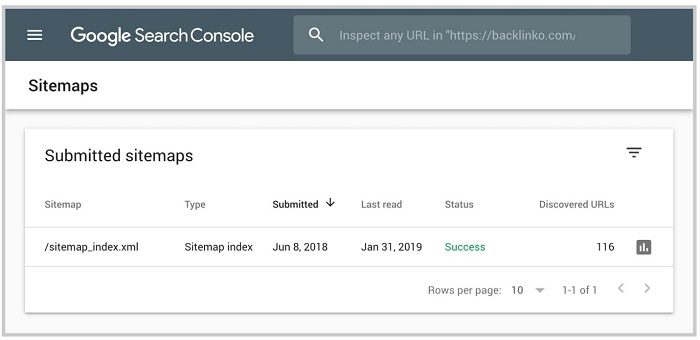 ۱. هنگامی که گوگل نقشه سایت شما را کرال کرد، بر روی آن در بخش «Submitted Sitemaps» کلیک کنید.
